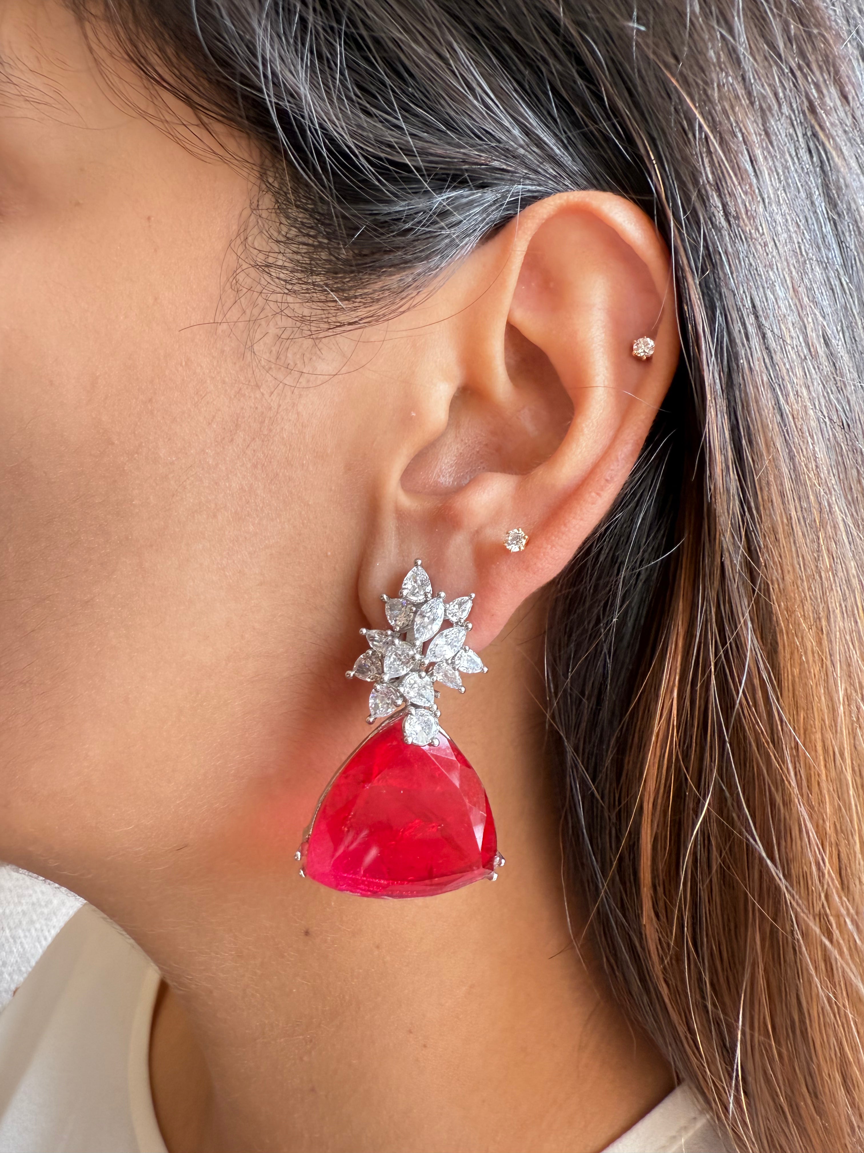 Featuring semi-precious stones like AAA Cubic Zirconia, real doublets and silver alloy bases. Each pair is designed to add a pop of luxury and vibrant color.