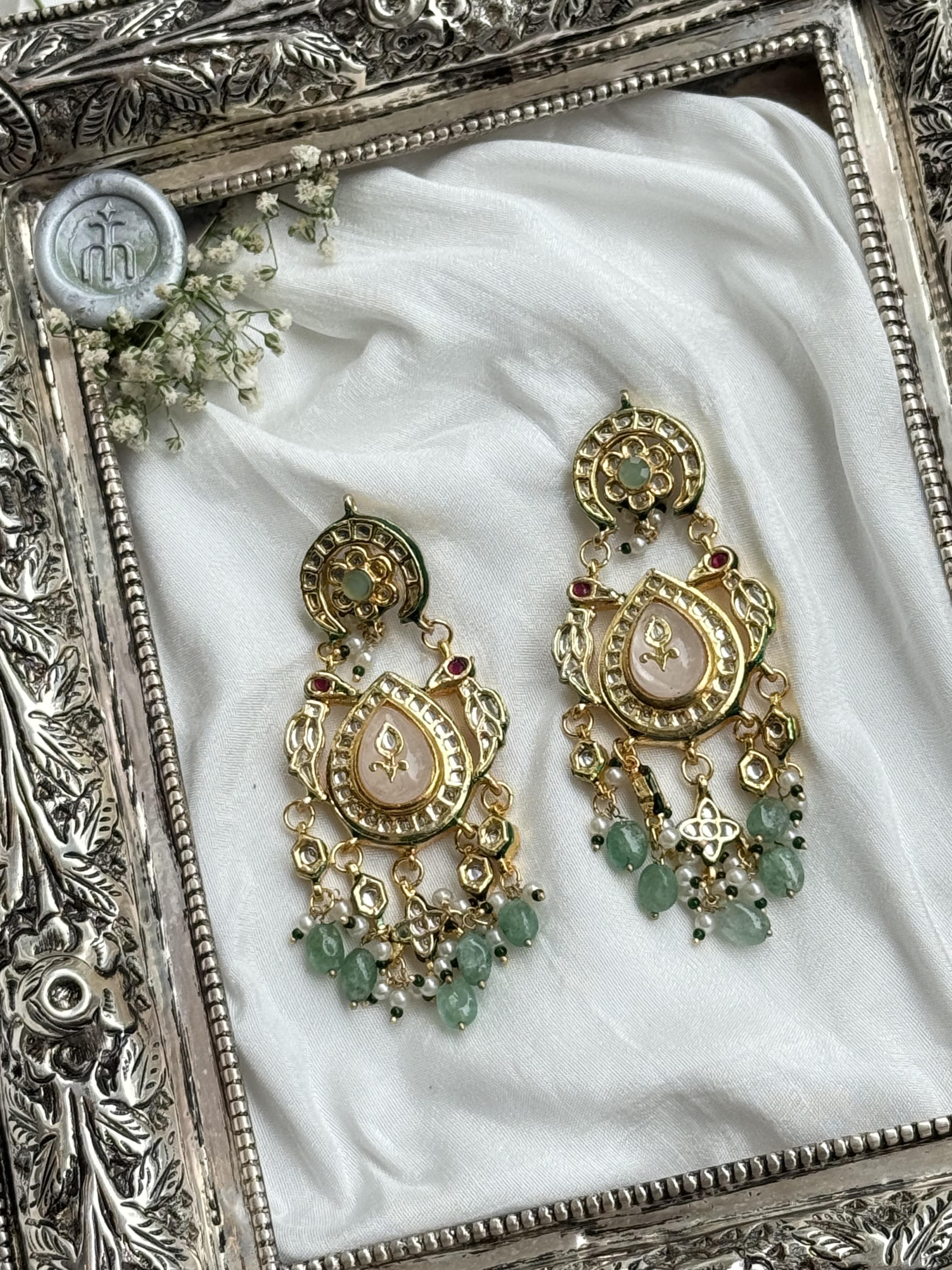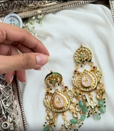 Regal kundan & polki work, crafted with premium quality stones and gold-look plating. Designed to look exactly like authentic bridal earrings.