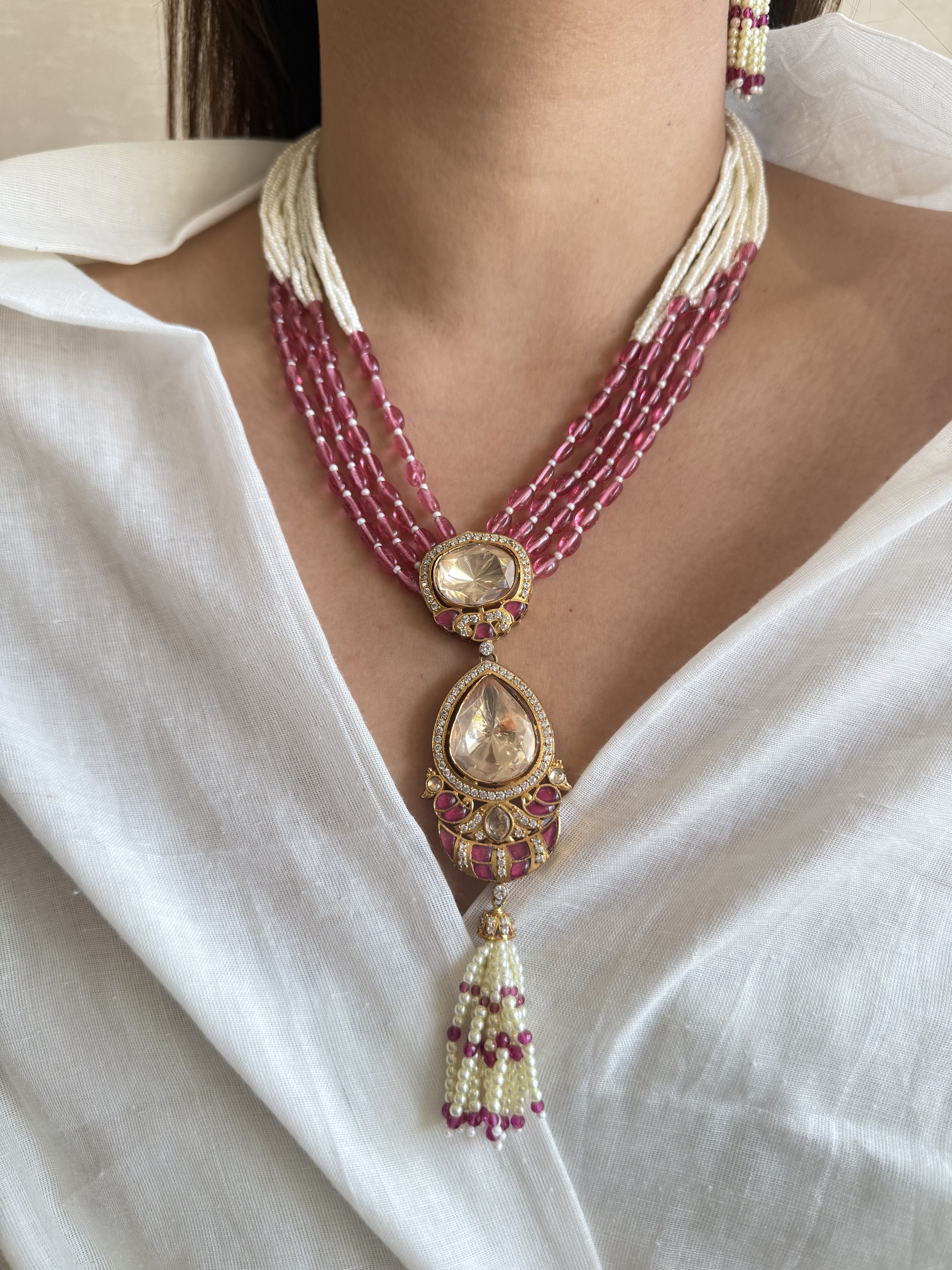 JASMINE PINK MOISSANITE POLKI SET