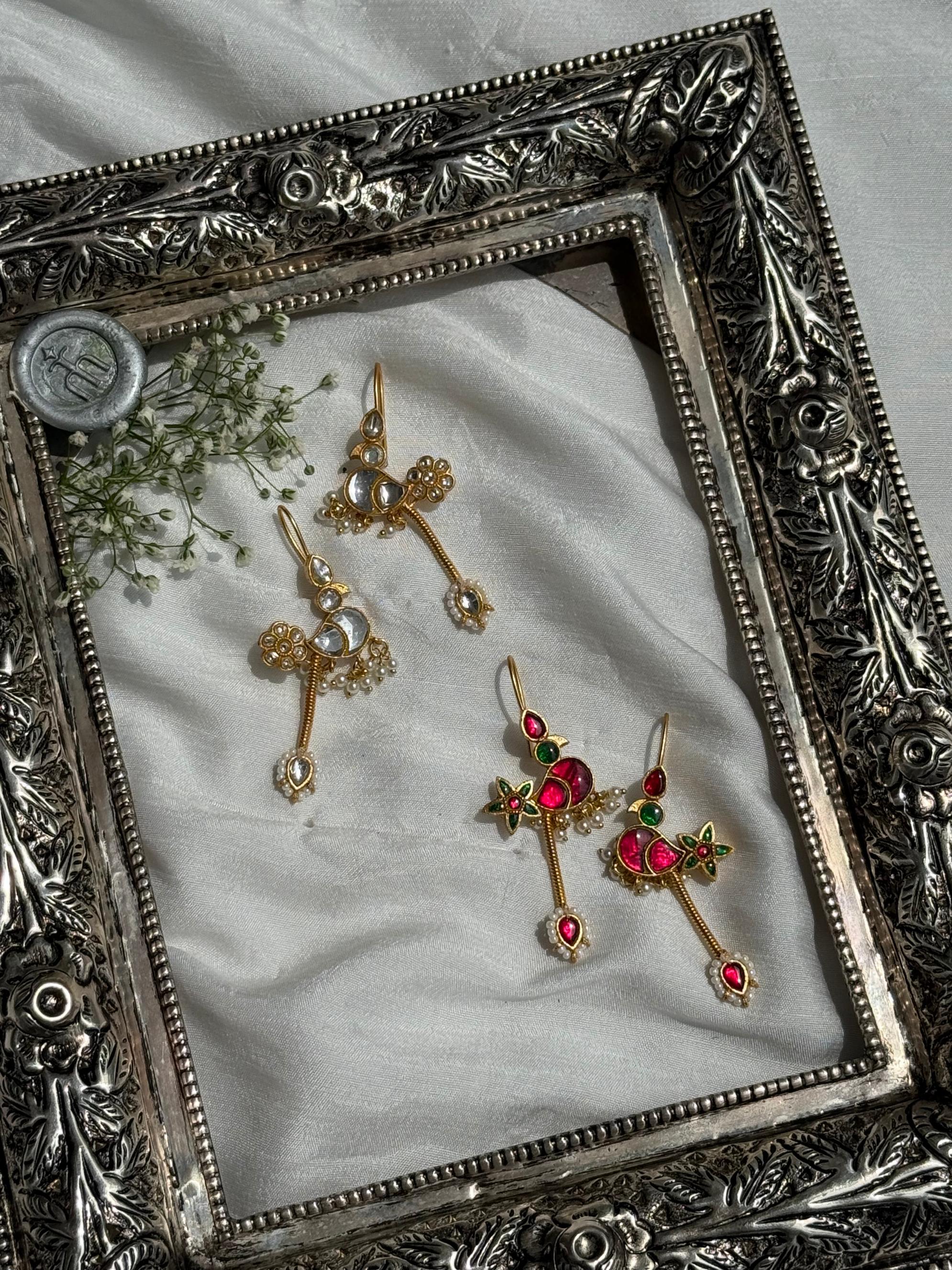 Regal kundan & polki work, crafted with premium quality stones and gold-look plating.  Modern cuff style-pattern that can also be worn as earrings. Handcrafted to look exactly like authentic jewelry.