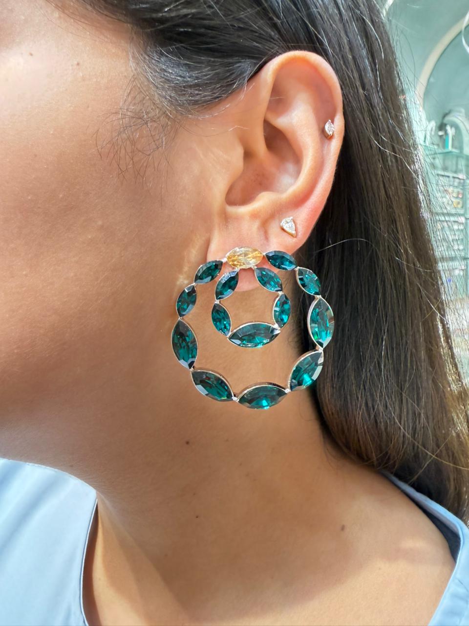 Created with AAA cubic zirconia and semi-precious doublets, , rhodium plated, anti-tarnish & repolishable. Perfect for luxury and party wear.