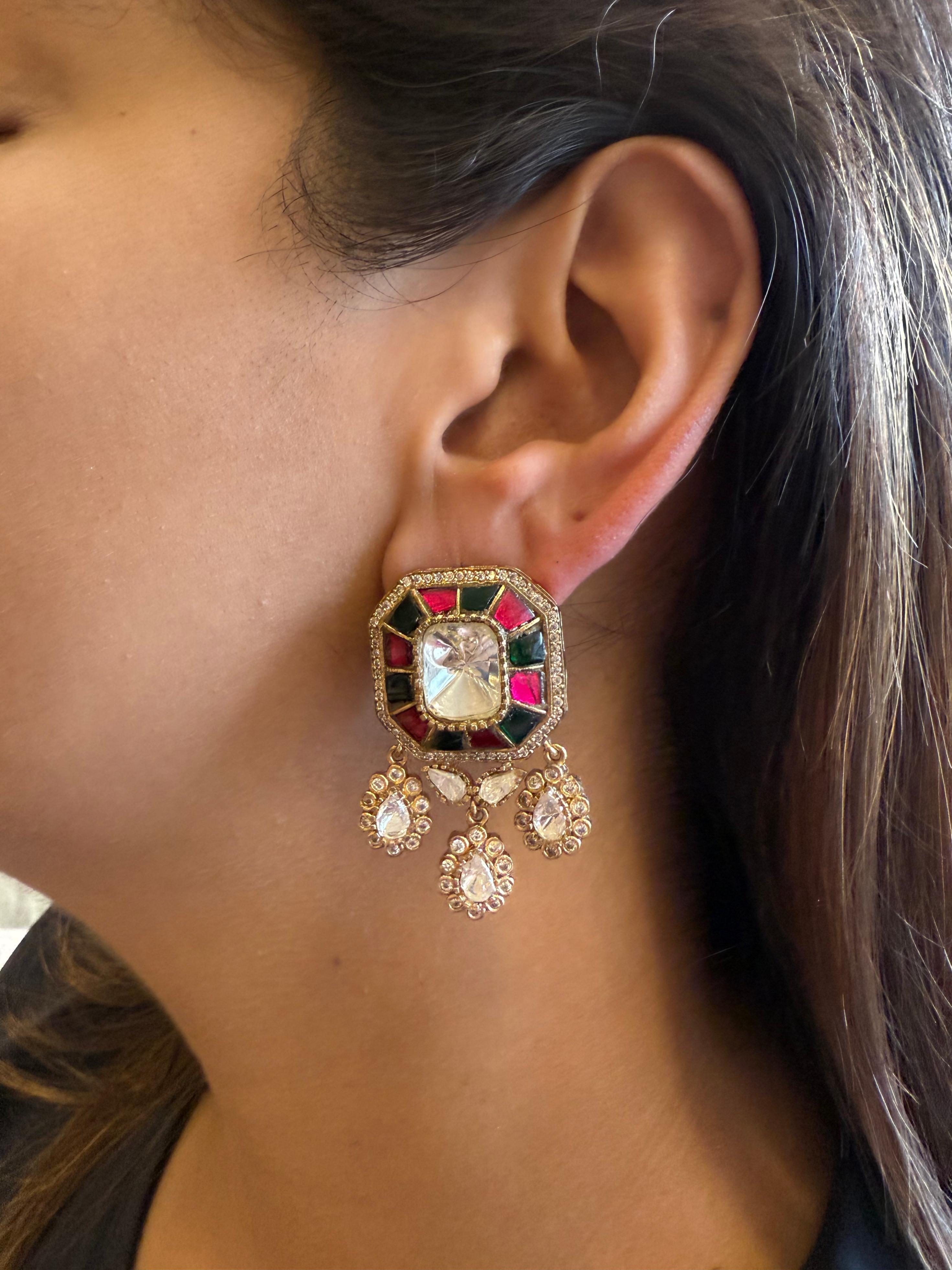 Regal kundan & polki work, crafted with premium quality stones and gold-look plating. Designed to look exactly like authentic bridal earrings.