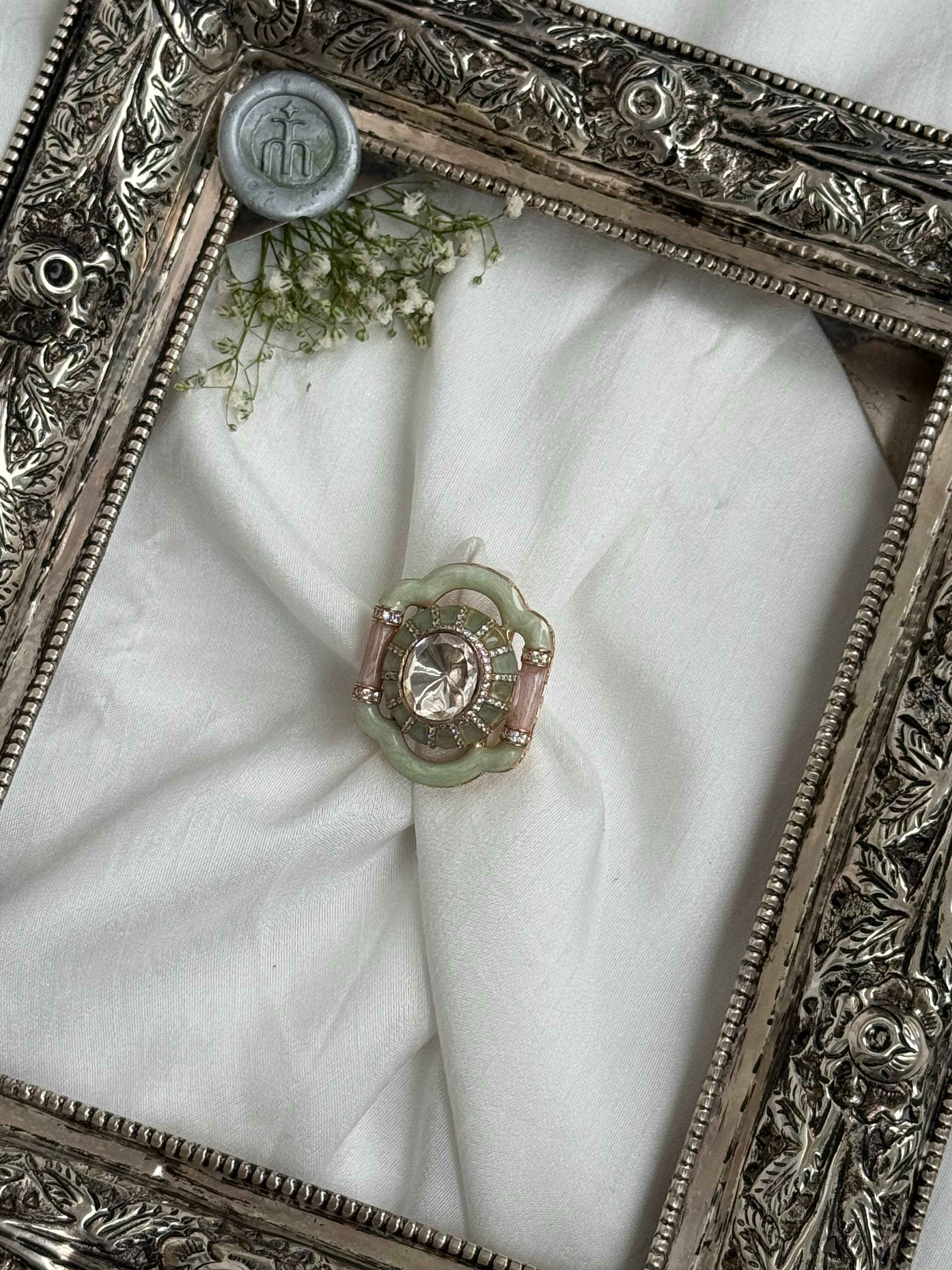 RUHI GREEN MOISSANITE POLKI RING