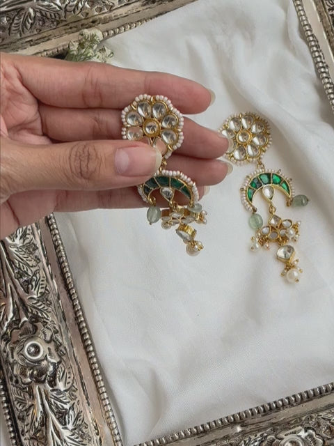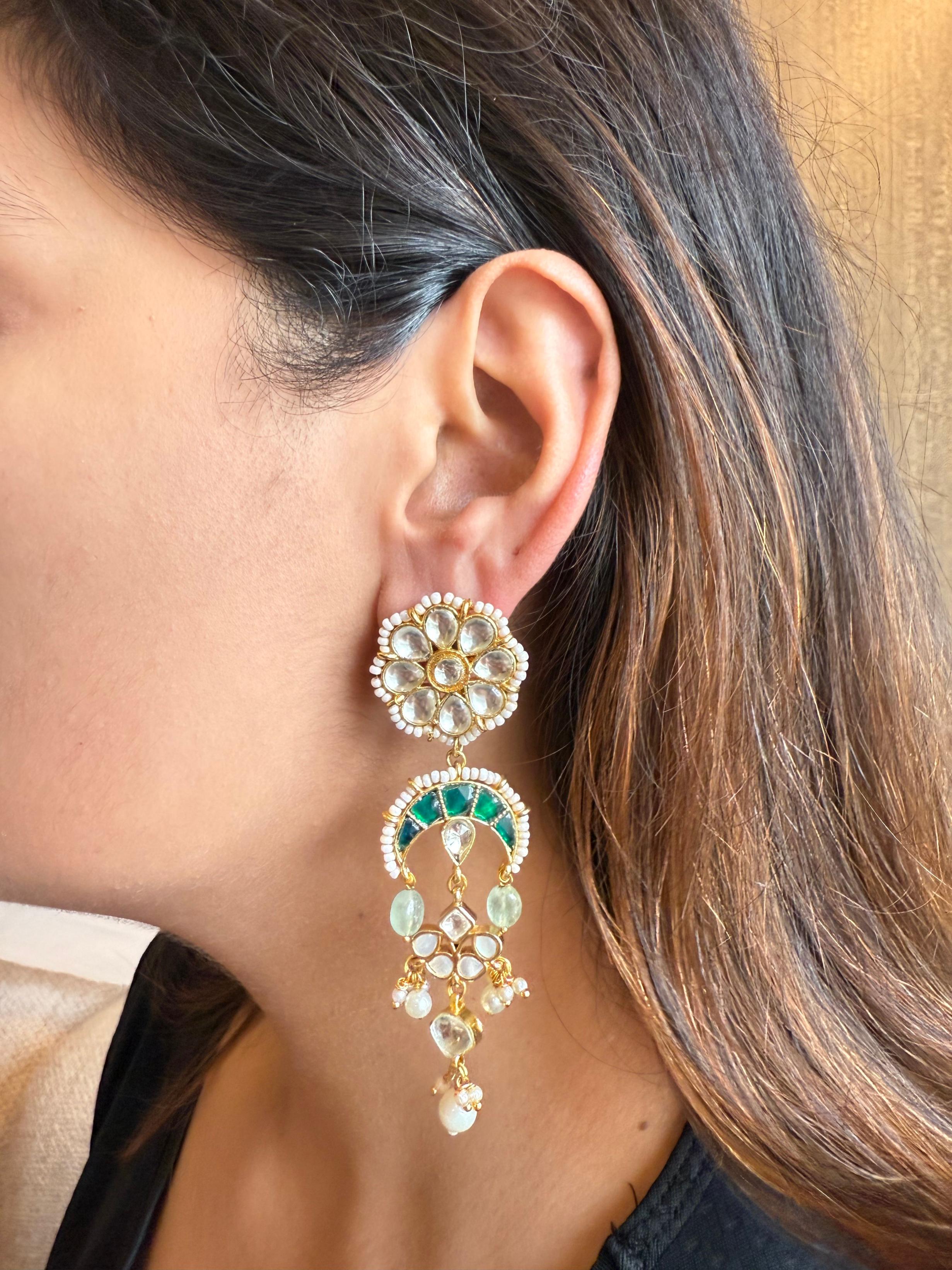 Regal kundan & polki work, crafted with premium quality stones and gold-look plating. Designed to look exactly like authentic bridal earrings.