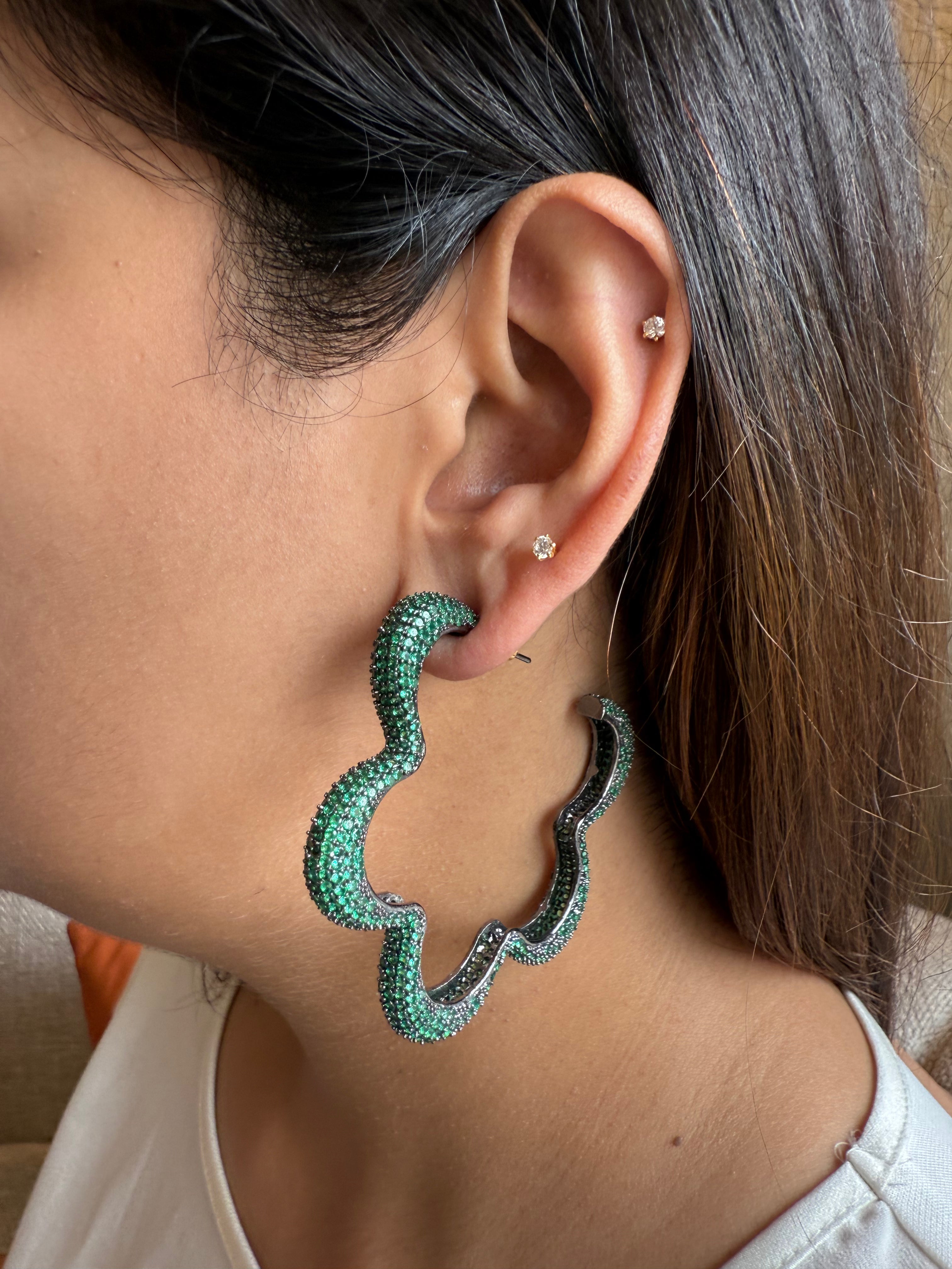 Featuring semi-precious stones like Coloured American Diamonds, and black rhodium-plated, with silver alloy bases. Each pair is designed to add a pop of luxury and vibrant color. Anti-tarnish