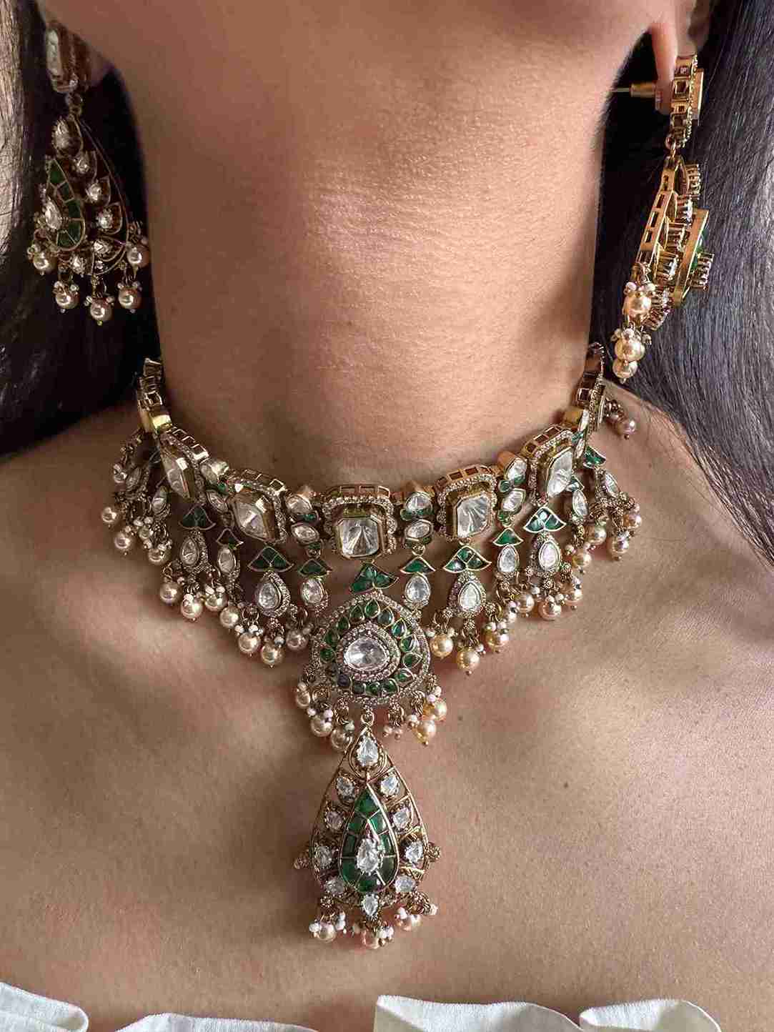 Handcrafted with supreme quality polki stones, our kundan & polki sets replicate the grandeur of real jewellery at a fraction of the price. Perfect for weddings, festive occasions, and timeless heirloom styling.